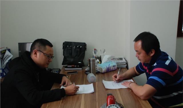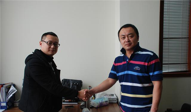 正式签署协议。左为集杰号国际机车俱乐部总经理刘平,右为北京继东商贸有限公司总经理张继东